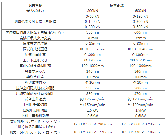 ●WE-300/600型液壓式萬能試驗(yàn)機(jī)主要技術(shù)規(guī)格及參數(shù):
