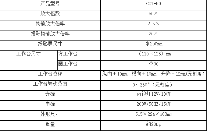 CST-50沖擊試樣投影儀產(chǎn)品技術(shù)參數(shù):